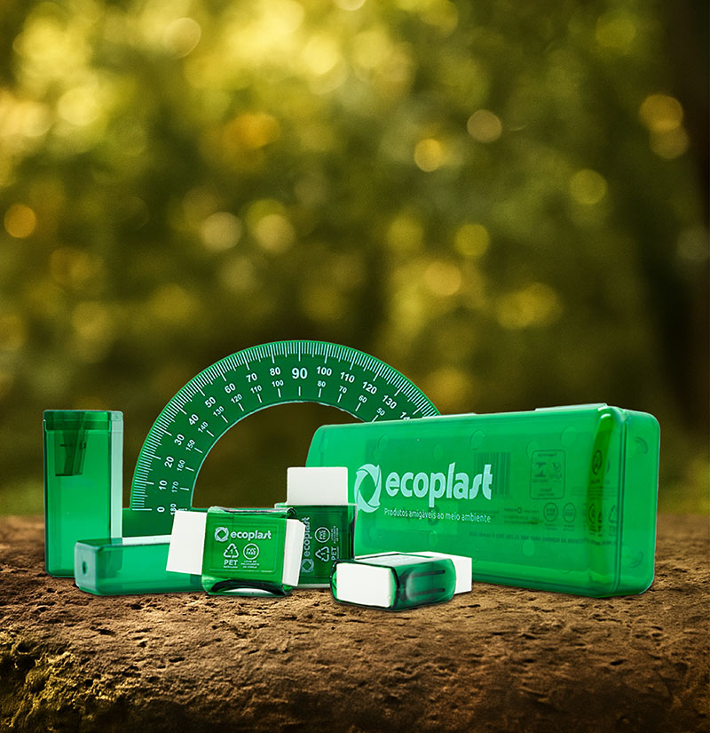 A Ecoplast® é pioneira na utilização de PET e PP reciclados na fabricação de material escolar e de escritório.